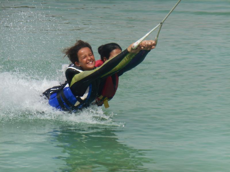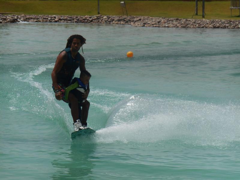 Lundi 02.07 : Matinée au Waiki Park (ski nautique sur un lac artificiel), où une jeune fille s’est écriée « je vais faire un strike) au lieu d’un strip parce qu’elle perdait son maillot. Du coup elle a mis une combinaison…et les autres participants ont suivi en mettant eux aussi une combinaison.